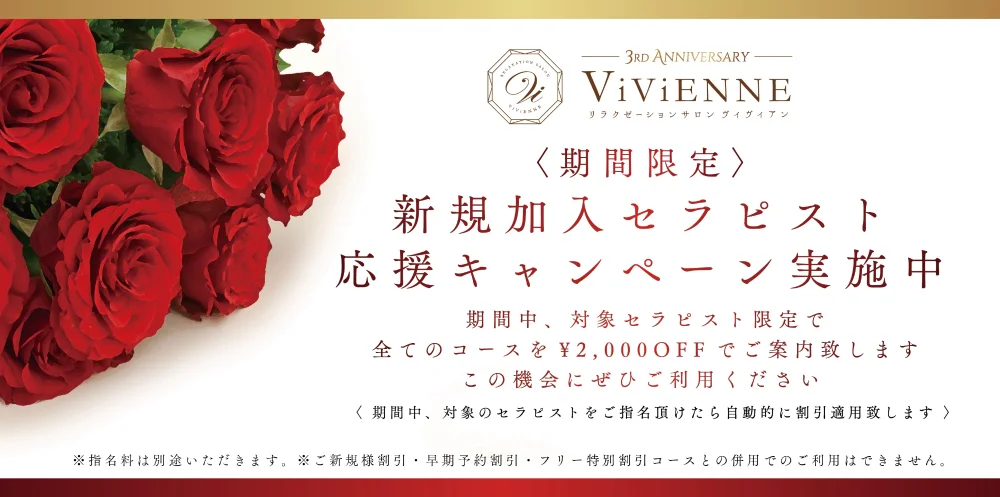 - Vivienneの施術は、お客様が包み込まれたようなお気持ちになっていただき、心からリラックスしていただけるよう心がけております。「ここに来てよかった」と思っていただき、明日への活力を養っていただけるような場所にしていきたいと願っております。